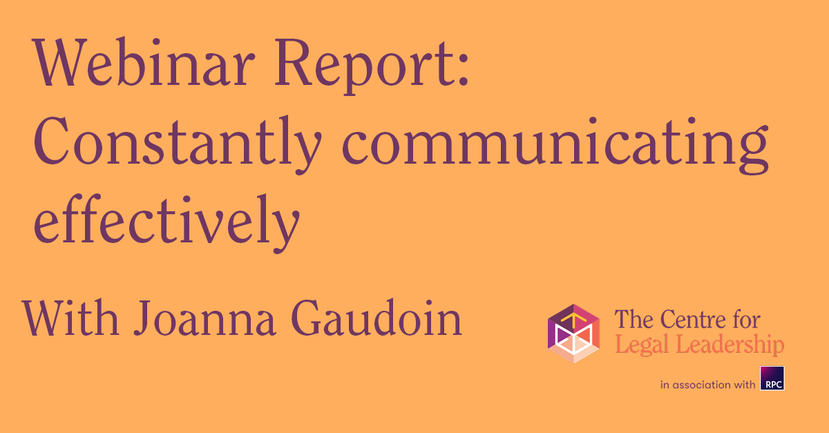 In the second of this year’s webinars examining the The Four Vital Skills Needed for in-House, Joanna Gaudoin tackled the extensive subject of communication skills.